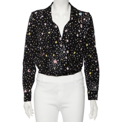Moschino Boutique Black Star Print Silk Long Sleeve Long Sleeve Bodysuit S