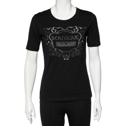 Boutique Moschino Black Stiletto Printed Cotton Feather Pin Detail T-Shirt M
