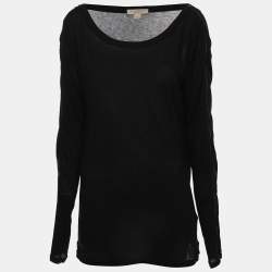 Burberry Grey Cotton Knit Long Sleeve Button Front Top M