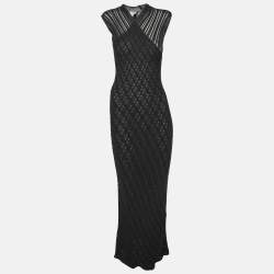 Celine Black Cotton Plunge Neck Midi Dress S