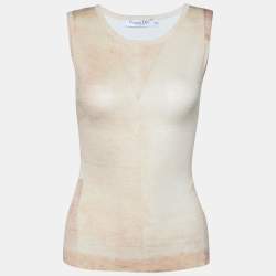 Dior White Striped Marbela Silk Knit Sleeveless Top S
