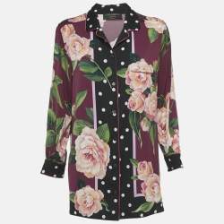 Dolce & Gabbana Burgundy Silk Ruffle Trim Detailed Button Front Shirt M
