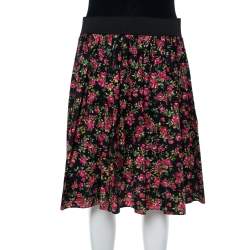 Dolce & Gabbana Navy Blue Floral Print Silk Blend Pants S