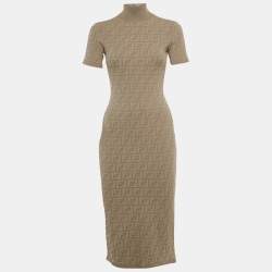 Fendi Brown Zucca Knit Round Neck MIdi Dress M