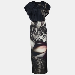 Fendi Black Patterned Silk Pleated Midi Skirt S