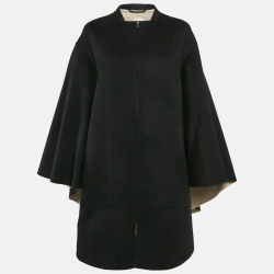 Hermès Black Wool Blend Zip-Up Cape Coat L
