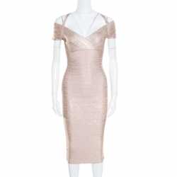 Herve Leger Metallic Copper Embellished Bandage Dress XS