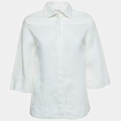 Loro Piana Off-White Rib Knit and Linen Open Front Cardigan S