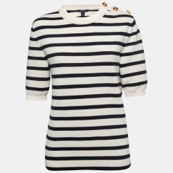 Louis Vuitton Off White Striped Wool Short Sleeve Sweater L