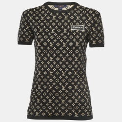 Louis Vuitton Black Monogram Jacquard Knit Crew Neck Half Sleeve T-Shirt S