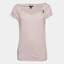 Louis Vuitton Pink Coated Silk Bow Detailed Elasticized Waist Top M