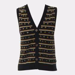 Louis Vuitton Black, Brown Knitted Stripe Quatrefoil Sequin Vest L