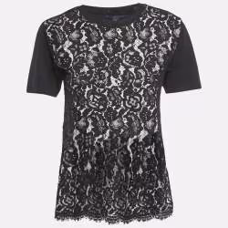 Louis Vuitton Black Cotton Lace Overlay Crew Neck T-Shirt XS