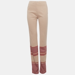 Miu Miu Beige Striped Wool Blend Wide Leg Pants S