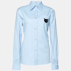 Miu Miu Blue Cotton Cat Logo Embroidered Button Front Shirt S