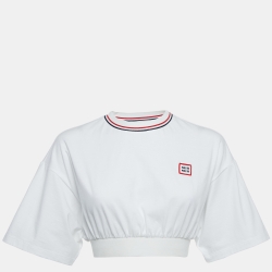 Miu Miu White Cotton Logo Patch Crop T-Shirt XS