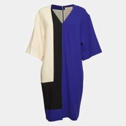 Roksanda Ilincic Blue/White Wool Color-block Short Dress L