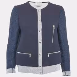 Sandro Navy Blue Crepe Zip-Up Contrast Trim Jacket L
