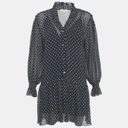 Sandro Navy Blue Polka-Dot Georgette Fil Coupé Mini Dress M