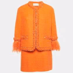 Valentino Orange Embellished Tweed Open Front Jacket & Skirt Set S/M