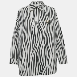 Valentino White/Black Zebra Print Cotton V Detail Oversized Shirt XS