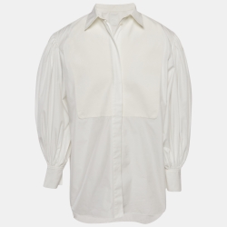 Valentino Le Blanc White Paneled Cotton Puff Sleeve Shirt L