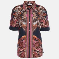 Versace Orange Rose Printed Silk Button Front Long Sleeve Blouse S