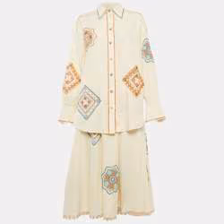 Zimmermann Cream Ottie Lace Trim Cotton Shirt and Skirt Set M/L