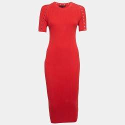 Alexander Wang Red Rib Knit Studded Bodycon Dress M