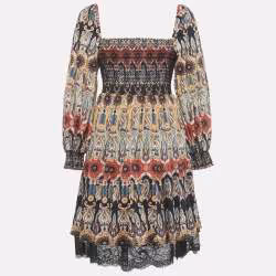 Alice + Olivia Multicolor Printed Crepe & Lace Detail Julissa Smocked Mini Dress S