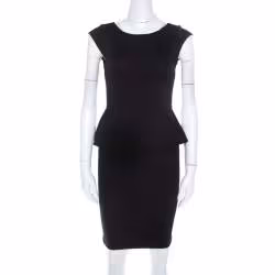 Alice + Olivia Black Stretch Knit Victoria Peplum Dress S