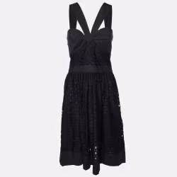 Boutique Moschino Black Patterned Lurex Knit Button Front Dress M