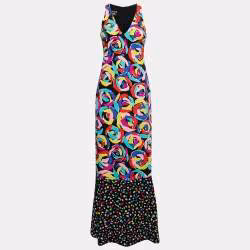 Boutique Moschino Multicolor Printed Silk Sleeveless Maxi Dress L