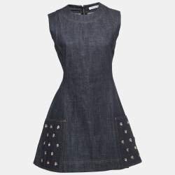 Dior Dark Blue Embroidered Denim Flared Dress L