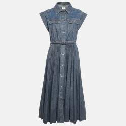 Christian Dior Blue Denim Belted Midi Dress M