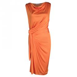 Dior Orange Perforated Lurex Knit Ruffled Sleeveless Dress L