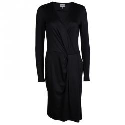 Emilio Pucci Black Knit Long Sleeve Draped Overlap Dress M