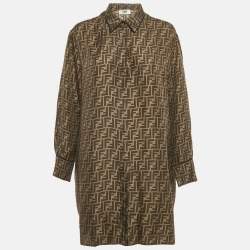 Fendi Brown Zucca Knit Round Neck MIdi Dress M