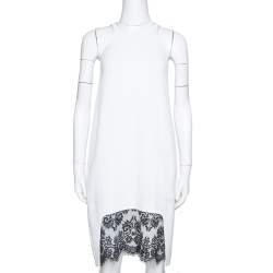 Just Cavalli White Crepe Lace Trim Sleeveless Shift Dress M