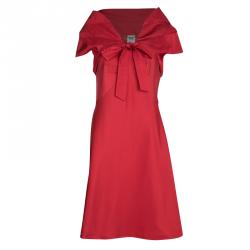 Moschino Red Silk Crepe Bow Detail Sleeveless Dress L