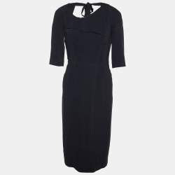Roland Mouret Navy Blue Wool Crepe Sheath Dress L