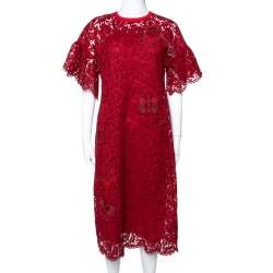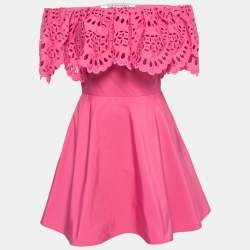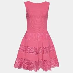 Valentino Pink Lace and Crepe Short Sleeve Crew Neck Dress M