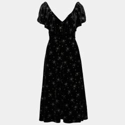 Valentino Black Crepe Sequin Embellished Flounce Sleeve Dress M