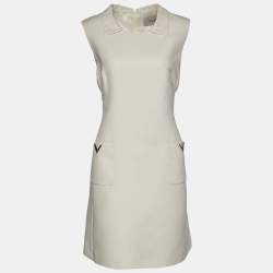 Valentino Beige Wool & Silk Bow Detail Belted Sleeveless Dress L