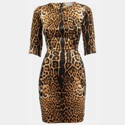 Yves Saint Laurent Brown Animal Printed Satin Silk Mini Dress S