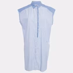 Zadig & Voltaire Blue Stripe Cotton Button Front Ruffled Rilt Mini Dress S