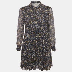 Zadig & Voltaire Navy Blue Rapidy Crinkle Printed Chiffon Mini Dress XS
