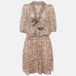 Zadig & Voltaire Beige Floral Print Bow Tie Mini Dress M