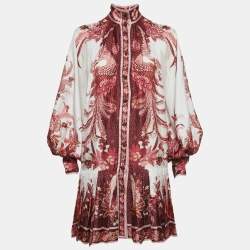 Zimmermann Multicolor/Red Floral Print Silk Pleated Mini Dress S