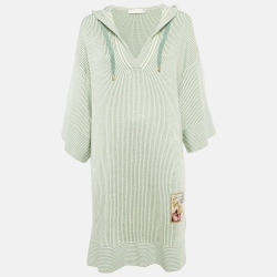 Zimmermann Green/White Acacia Stripe Knit Hooded Mini Dress L